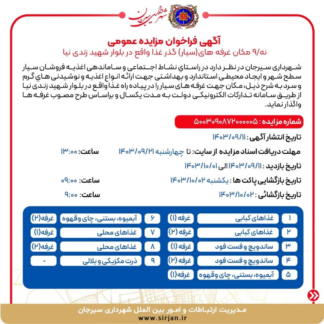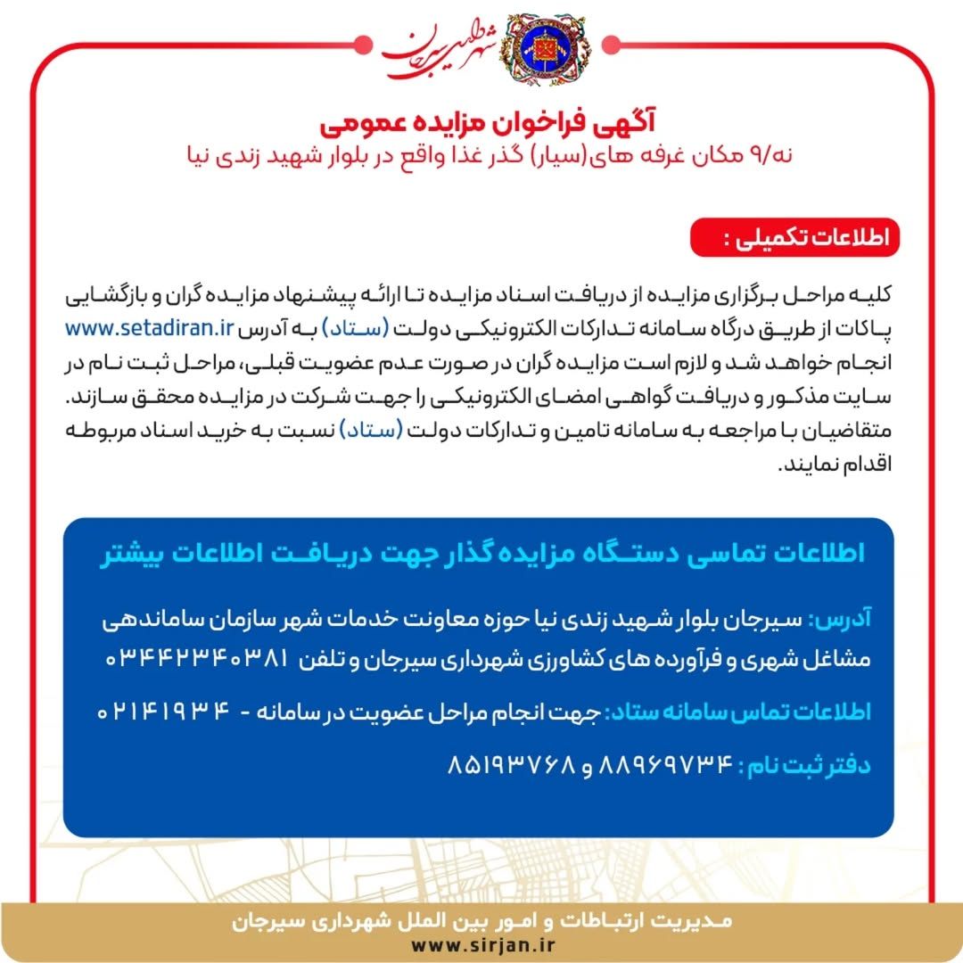 آگهی فراخوان مزایده عمومی غرفههای گذر غذا