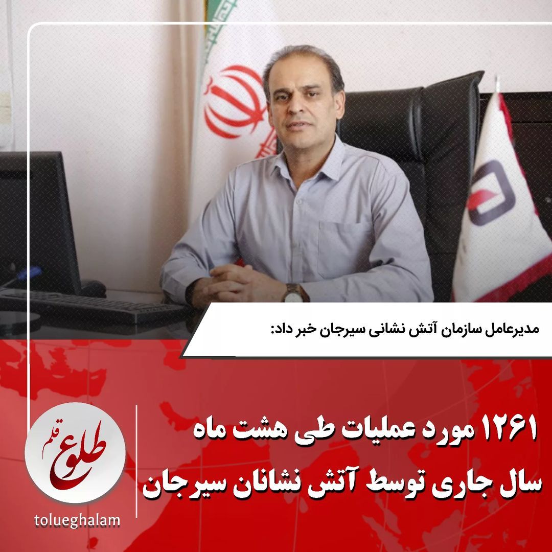مدیرعامل سازمان آتش نشانی سیرجان از پوشش ۱۲۶۱ عملیات توسط این سازمان در هشت ماهه سال ۱۴۰۳ خبر داد. به گزارش روابط عمومی سازمان آتش نشانی و خدمات ایمنی شهرداری سیرجان ، آتش پاد سوم رضا یوسفی افزود: ۵۶۳ مورد اطفا حریق و ۶۹۸ مورد عملیات امداد و نجات به دلیل بی احتیاطی و عدم رعایت مسائل ایمنی در سیرجان اتفاق افتاده است.