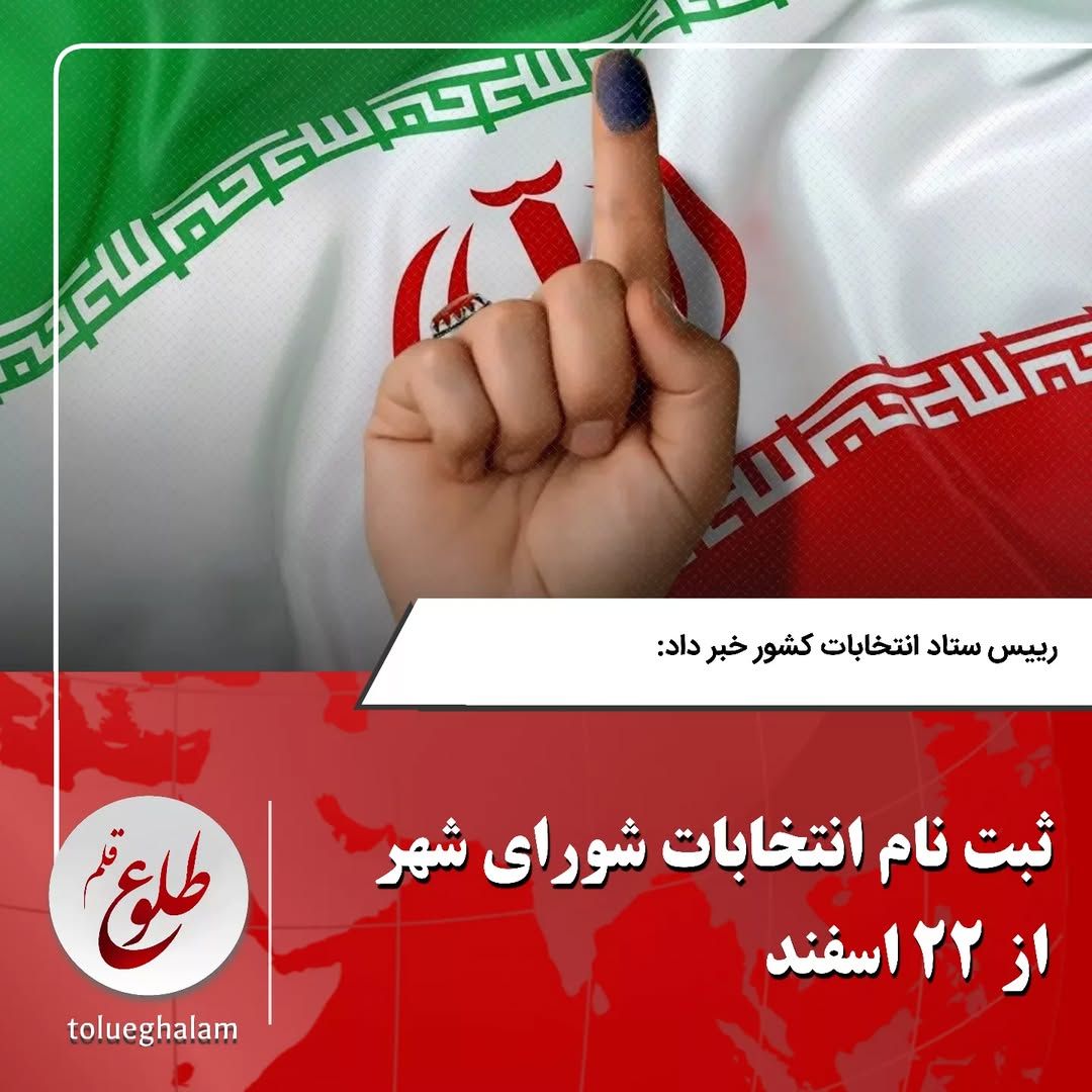 رئیس ستاد انتخابات کشور اعلام کرد که از ۲۲ اسفند به مدت یک هفته ثبت نام انتخابات شوراهای اسلامی انجام خواهد شد.