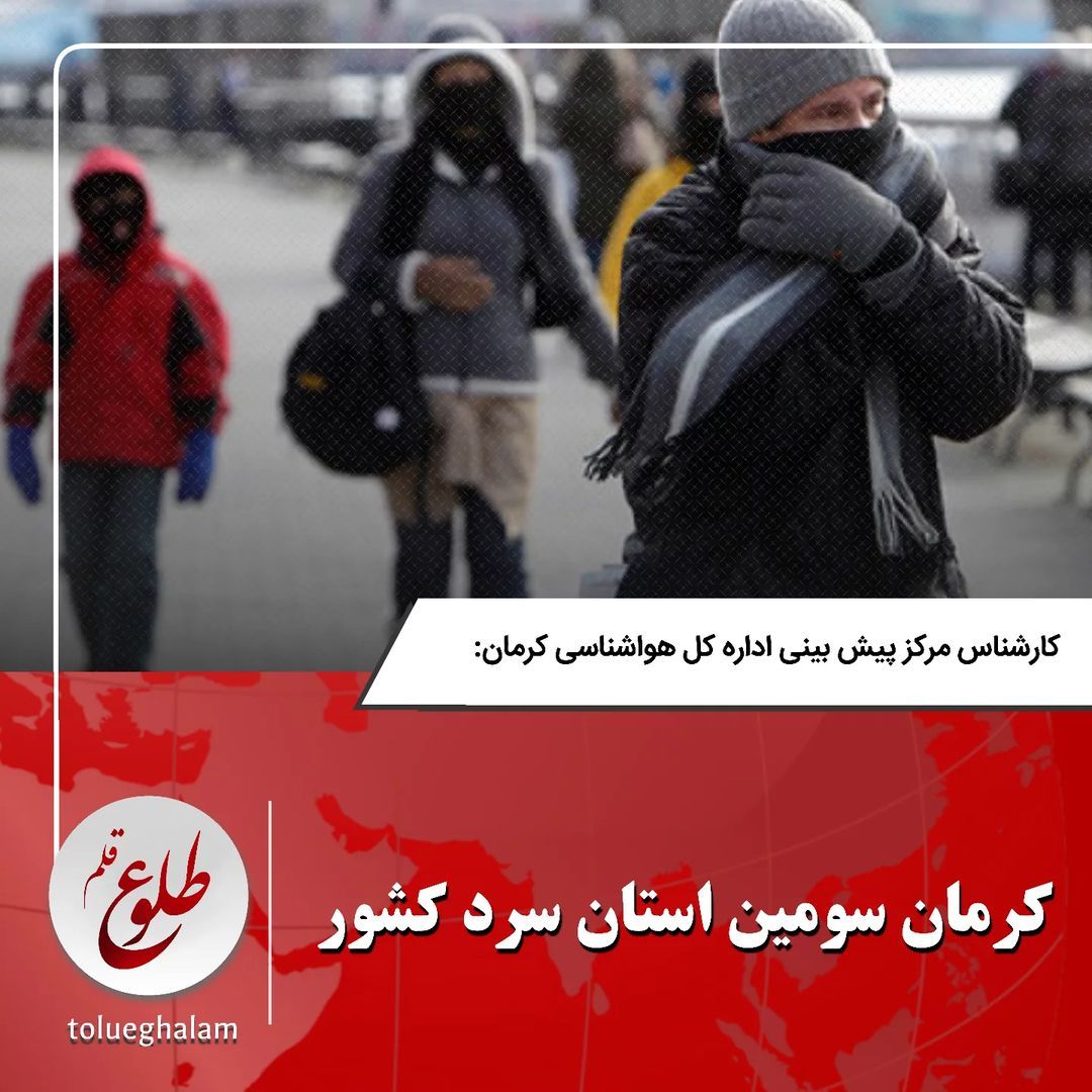 کارشناس مرکز پیش بینی اداره کل هواشناسی کرمان گفت: صبح امروز، کرمان بعد از ارومیه و بجنورد سومین استانِ سرد کشور بود.