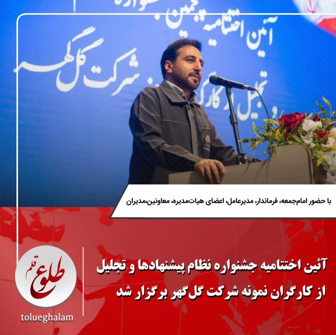 آئین اختتامیه پنجمین جشنواره نظام پیشنهادها و تجلیل از کارگران نمونه شرکت معدنی و صنعتی گلگهر با حضور امامجمعه، فرماندار، مدیرعامل، اعضای هیاتمدیره، معاونین، مدیران و کارگران شرکت گلگهر و برخی مدیران ارشد شرکتهای منطقه گلگهر برگزار شد.